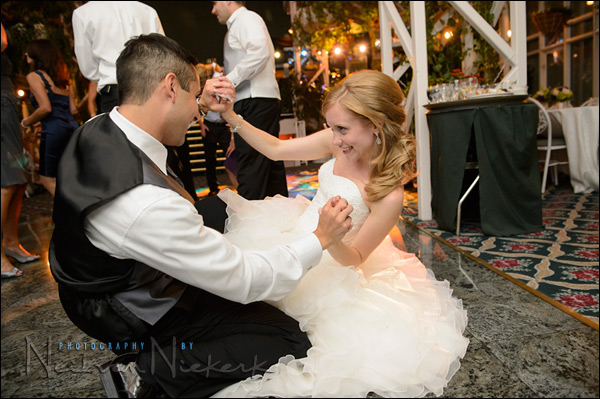 This is a simple technique that I constantly use when photographing the wedding reception – I look for brighter areas in the background, and *I* move around so that I can place my subjects against that. The colors and shapes in the background helps place my subjects in context of the wedding … as opposed to a dark background that they blend into.